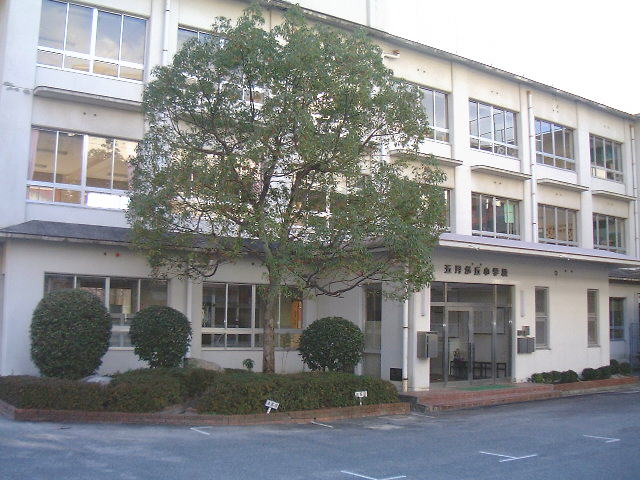 た美しい五月が丘の環境を表しています。 内側の円は、地域の方の大乗的協力と連帯を意味し、無限に発展する「人の和」を祈っています。 このように、恵まれた環境の中で、新生の意欲に燃える住民に支えられ、取り囲まれた中の小学校を意味するのが中央の小の表現です。 また、外側の五弁は、五月が丘が五つの丁で構成されていることも意味します。 |